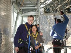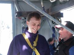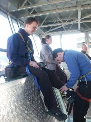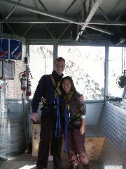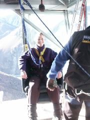 Louise dangling in the air |  Does this look safe to you? |  Strapping in my ankles |