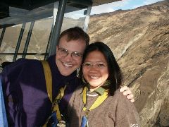 Riding out to the platform |  Riding out to the platform |  The ground far below |