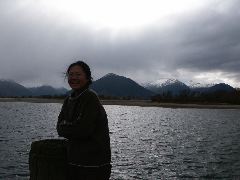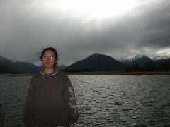 On the way back to land |  Louise in front of the LOTR mountain |  Louise in front of the LOTR mountain |
