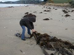 Playing in the snow |  Louise playing with NZ kelp |  More kelp fun |