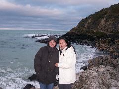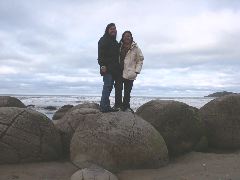 Us at the Moeraki boulders |  Louise and Christine on top of a little world |  Louise and Christine in Oamaru |