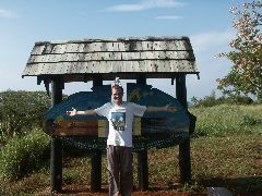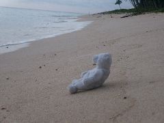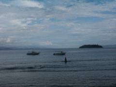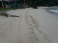 Clear water and a distant island |  Lavena lodge |  Only me and Mei leaving tracks on the beach |