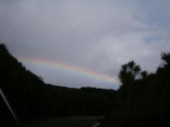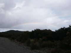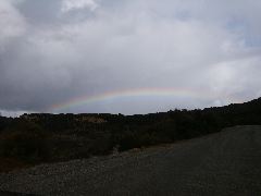 My trusty car and scenery behind |  A rainbow |  (*) Covering the whole sky |