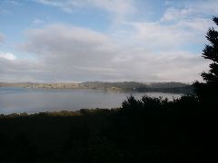 The Treehouse Backpackers |  View of lake from Backpackers |  Me in shadows |